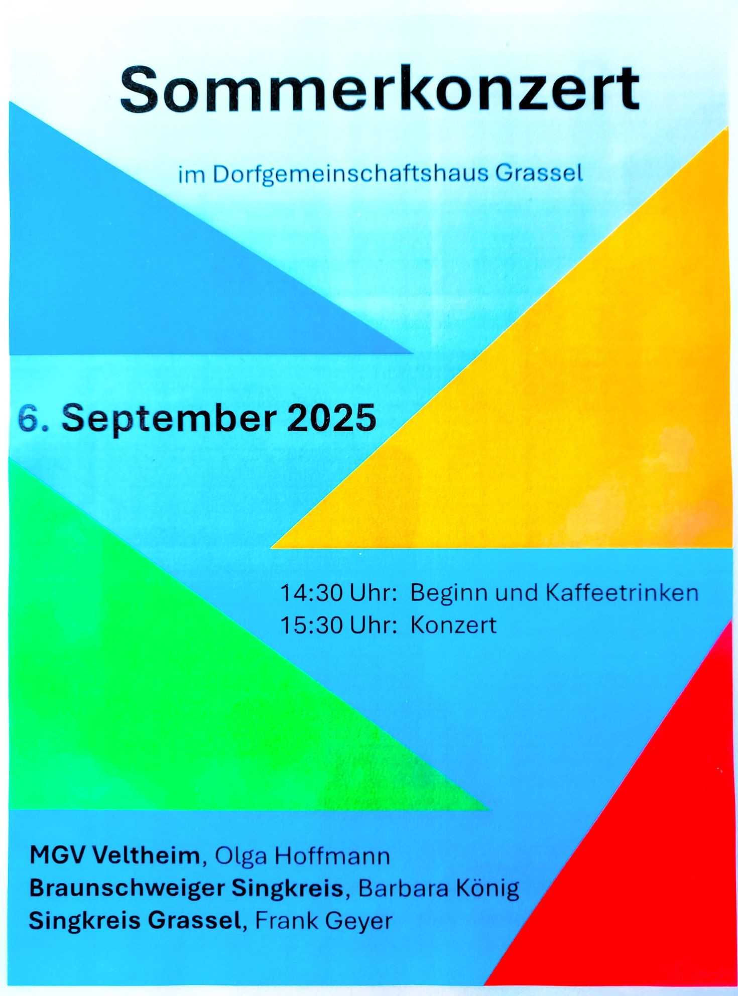 06. September 2025 – 14.30 Uhr Sommerkonzert im DGH Grassel
